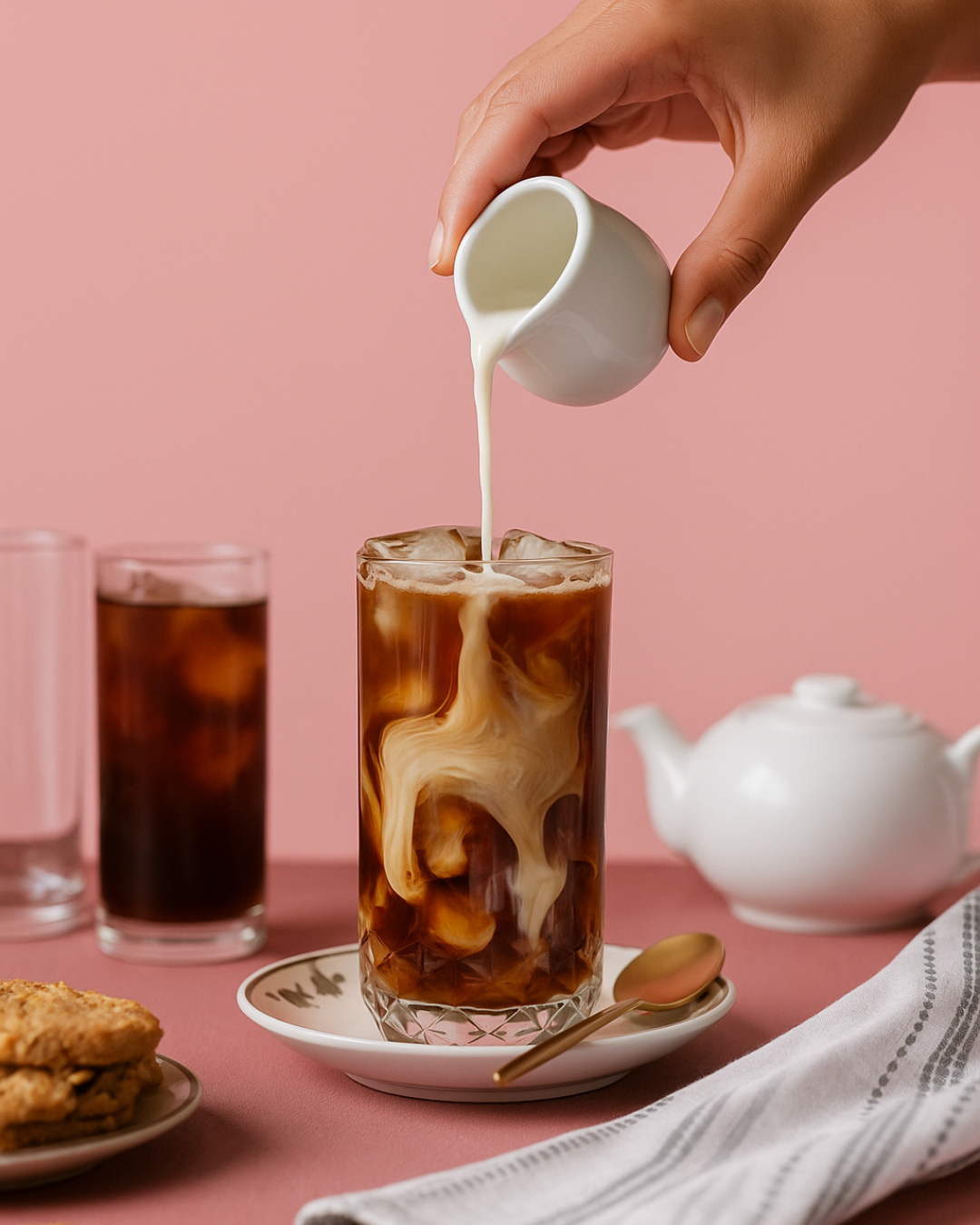 Pour a shot of coffee from your reusable pod into a cup. Stir in 1 tablespoon of your favorite caramel sauce and 1/2 teaspoon of cinnamon, then set aside to cool to room temperature. Fill a glass with ice, add 150mL of milk, and drizzle caramel sauce along the side if you like it sweet. Top with the cooled espresso and a pinch of cinnamon. Enjoy your delicious iced caramel cinnamon coffee!